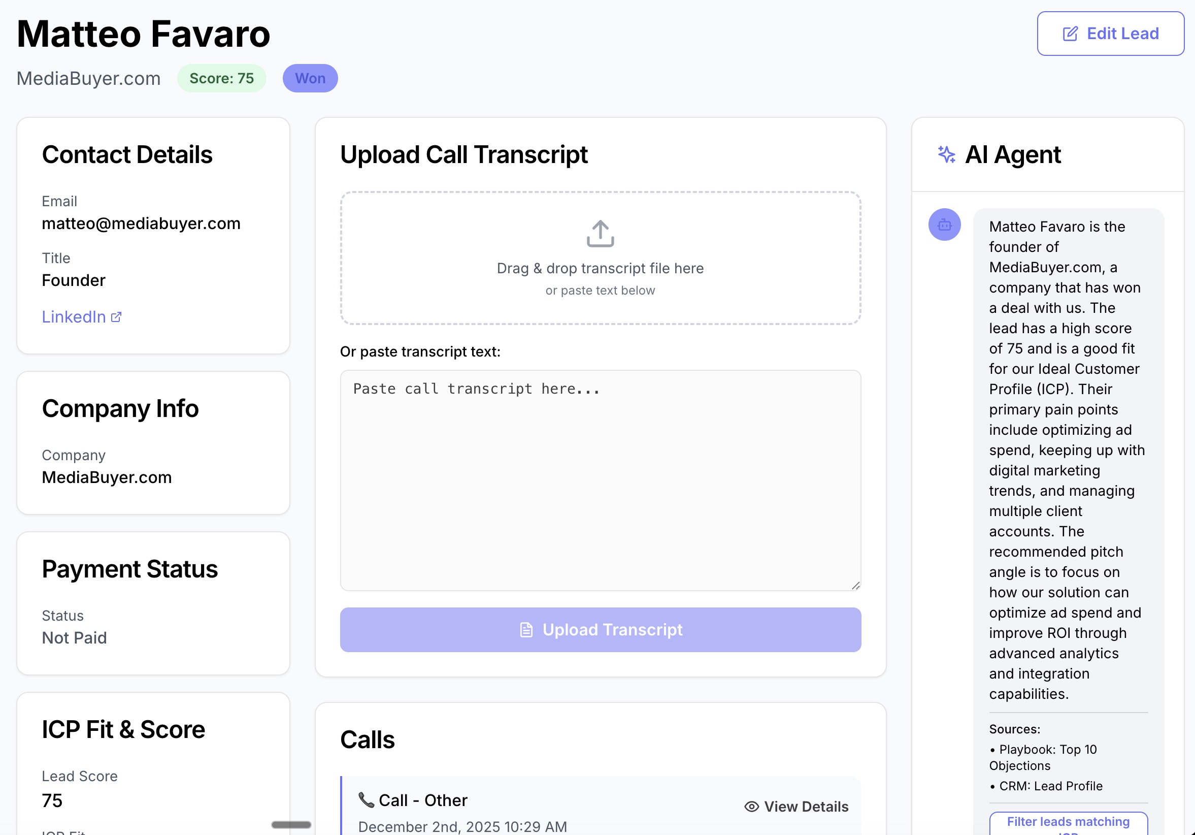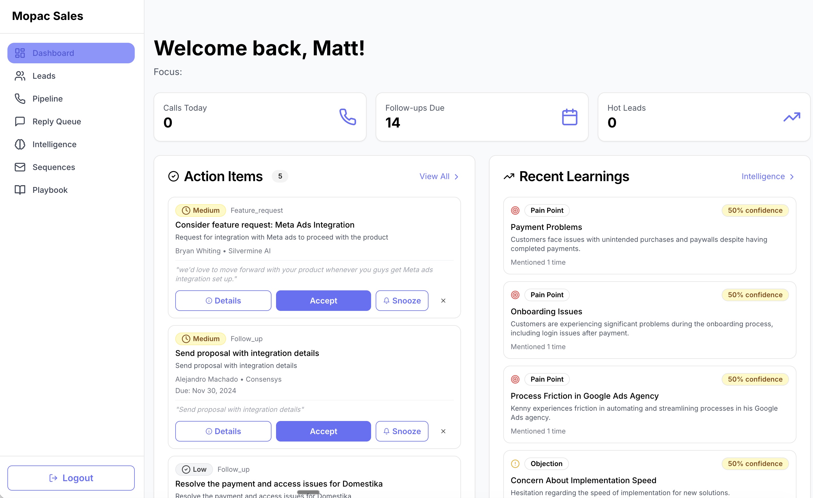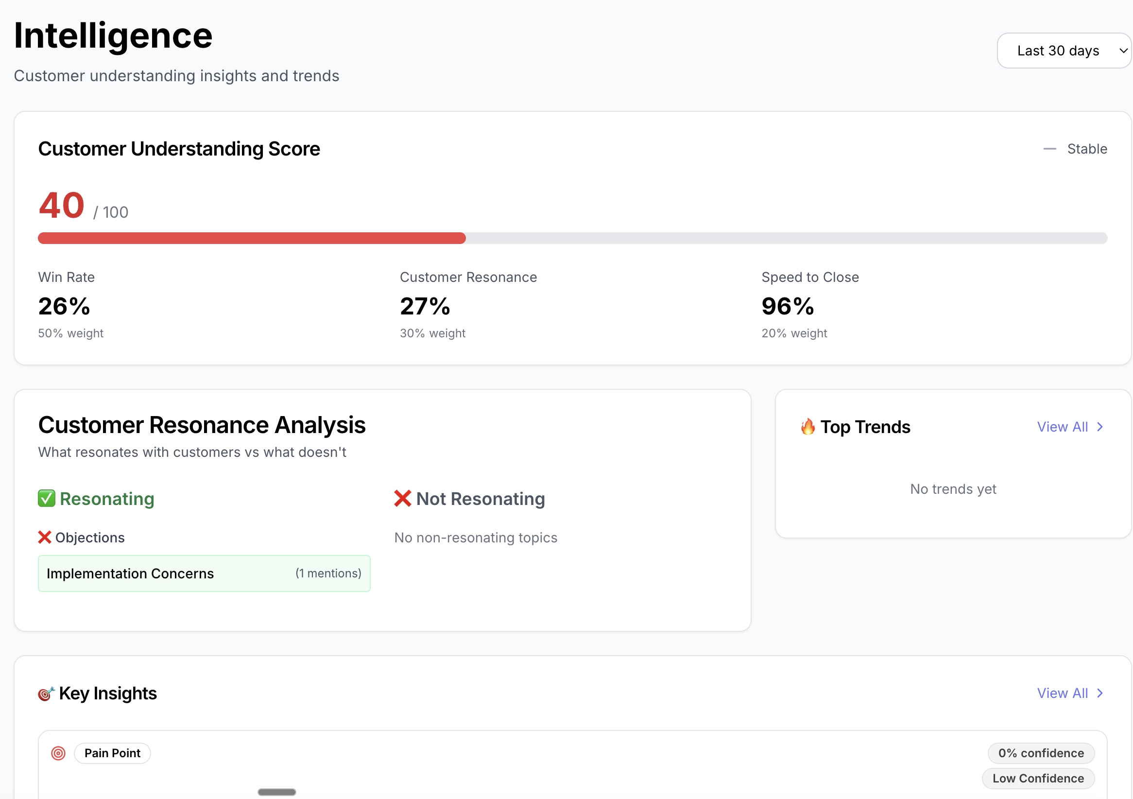 I watched our team spend hours prepping for calls, only to lose all that context the moment the call ended. We were making the same mistakes over and over because we couldn't see the patterns. We had no visibility into what was working.